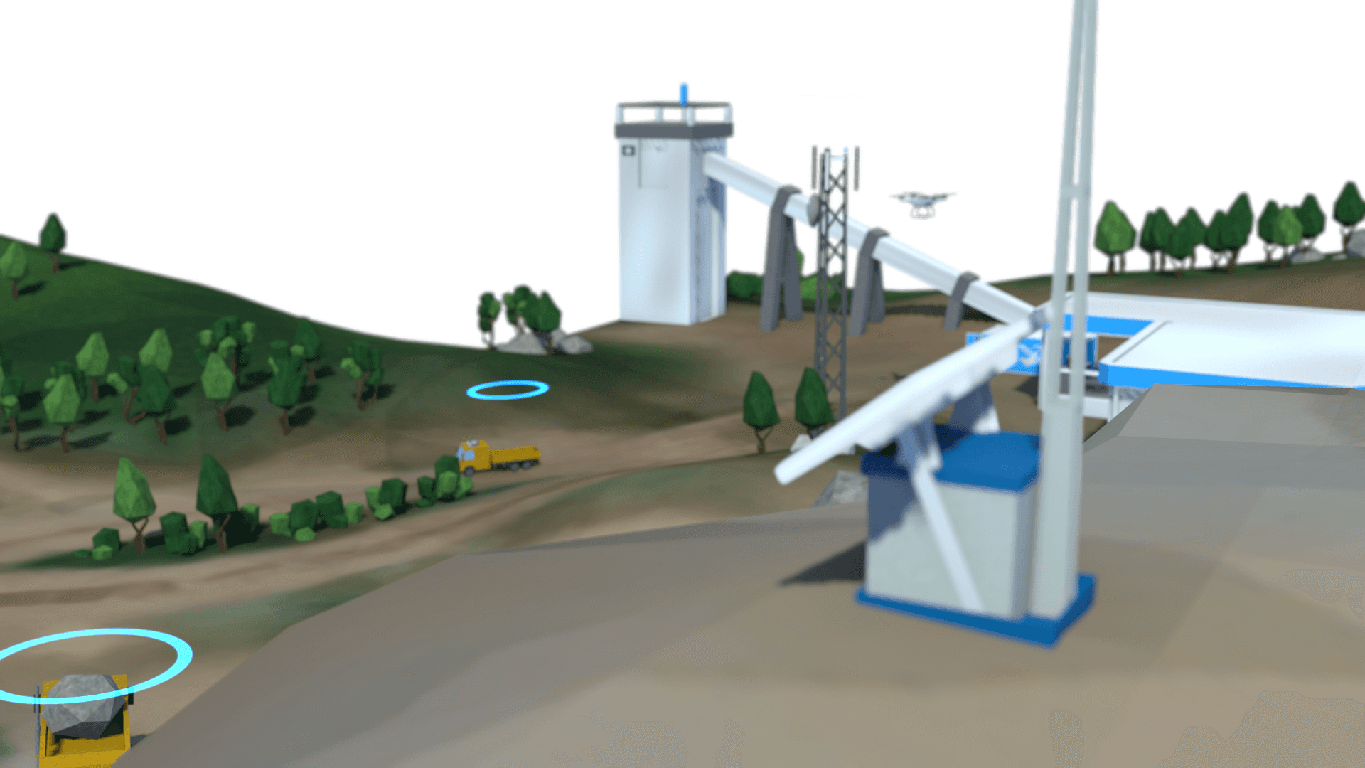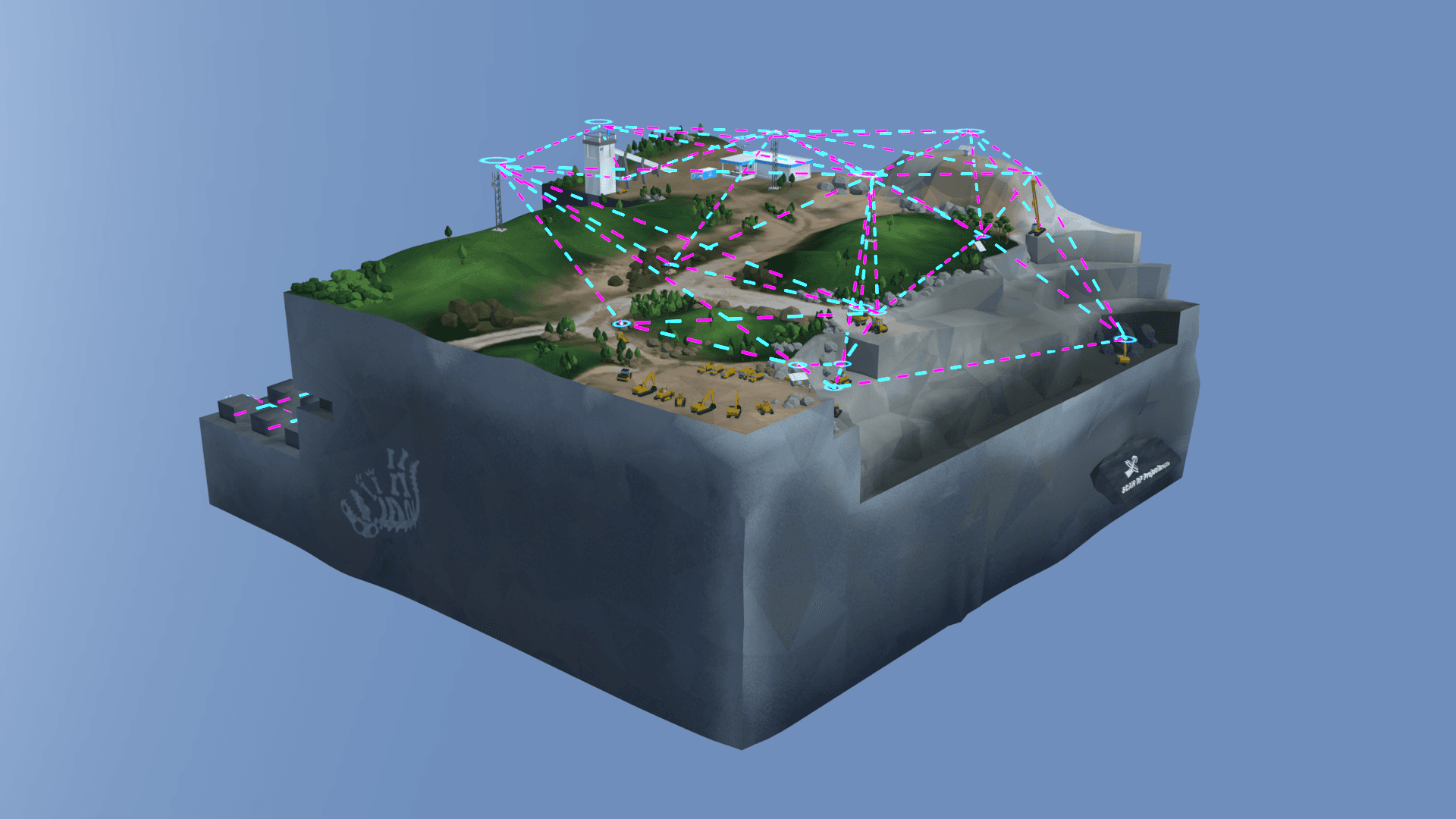 This model was designed as a sales tool to showcase the features and setup of the Rajant Mesh by ScanRF Projects. It includes various products developed by ScanRF, allowing users to view and understand their positioning in mining scenarios.